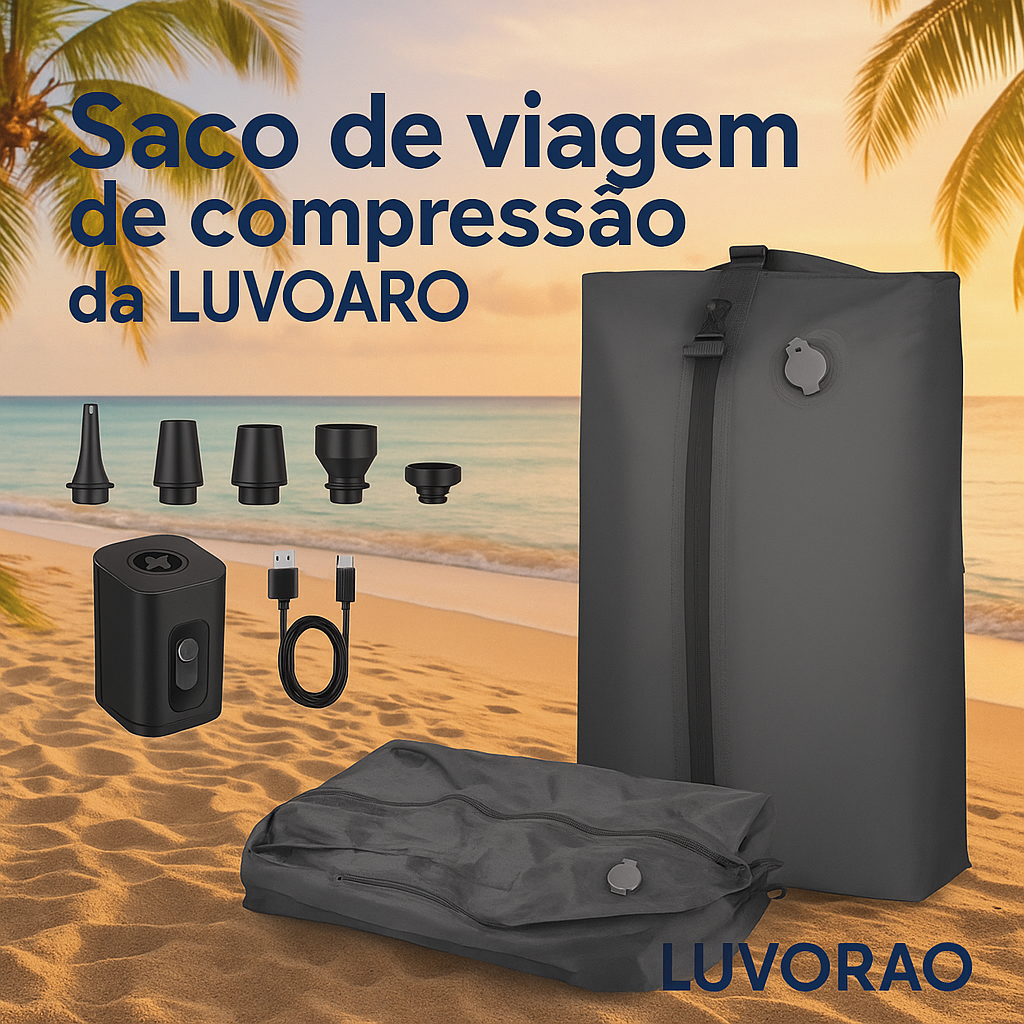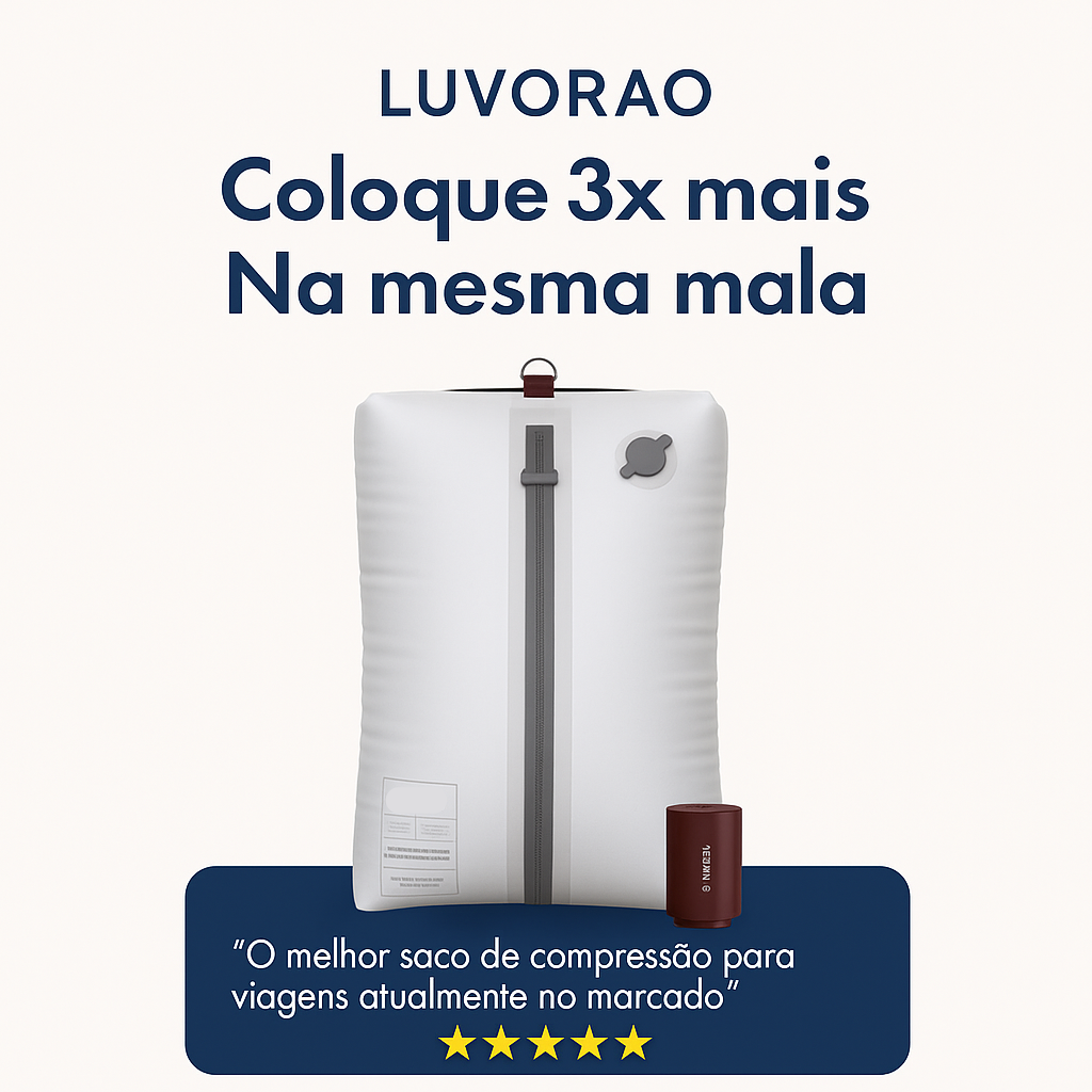 Quantas vezes quis levar “só mais uma coisa” e a mala já não fechava? A Compress Bag resolve esse problema. É um saco de vácuo ultraleve, reutilizável e feito com material resistente à água e ao tempo.